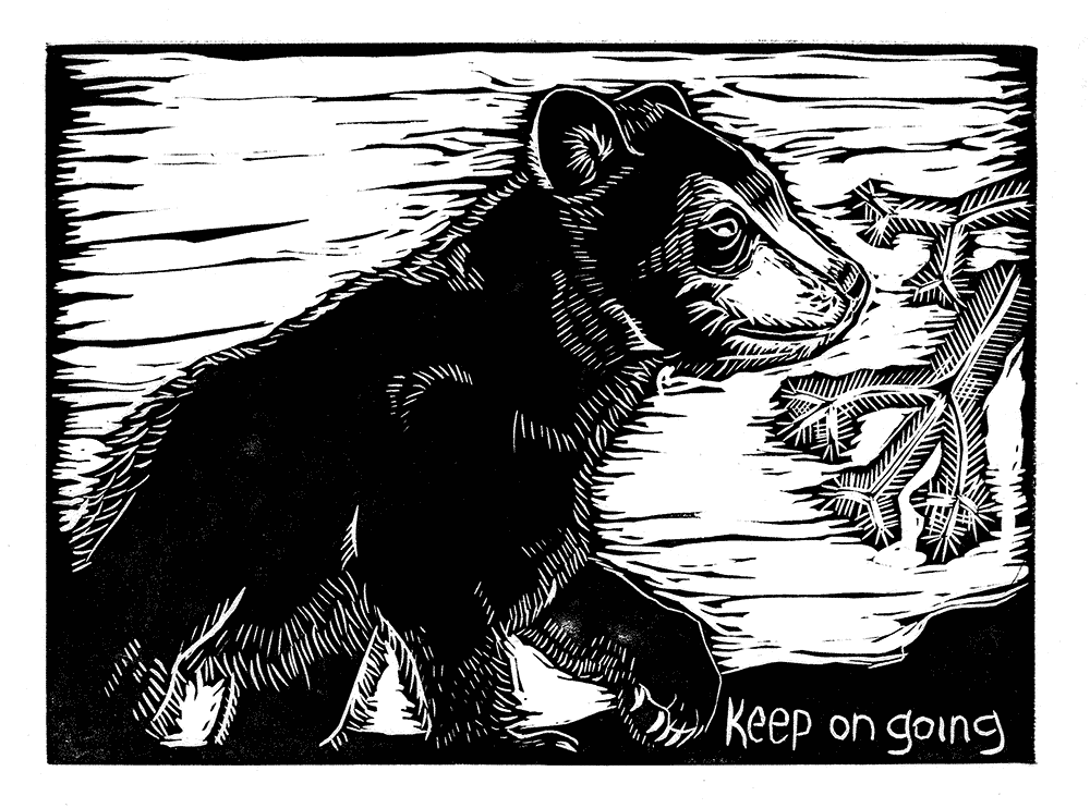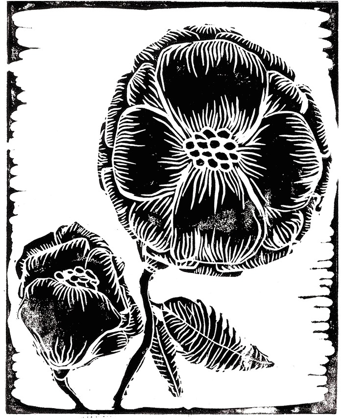 My name is Lori. I live in Grand Rapids, Michigan. I have been making block prints for several years and am drawn to the accessibility and affordability of print as art for the people. Most of my work, though not exclusively, is inspired by the natural world and my interactions with it. The vulnerability of too many plants and animals has inspired me to honor (and sometime memorialize) their legacy on this land. The swamp rose (Rosa Palustris) is native to this area and is a beautiful inspiration to me and my work.